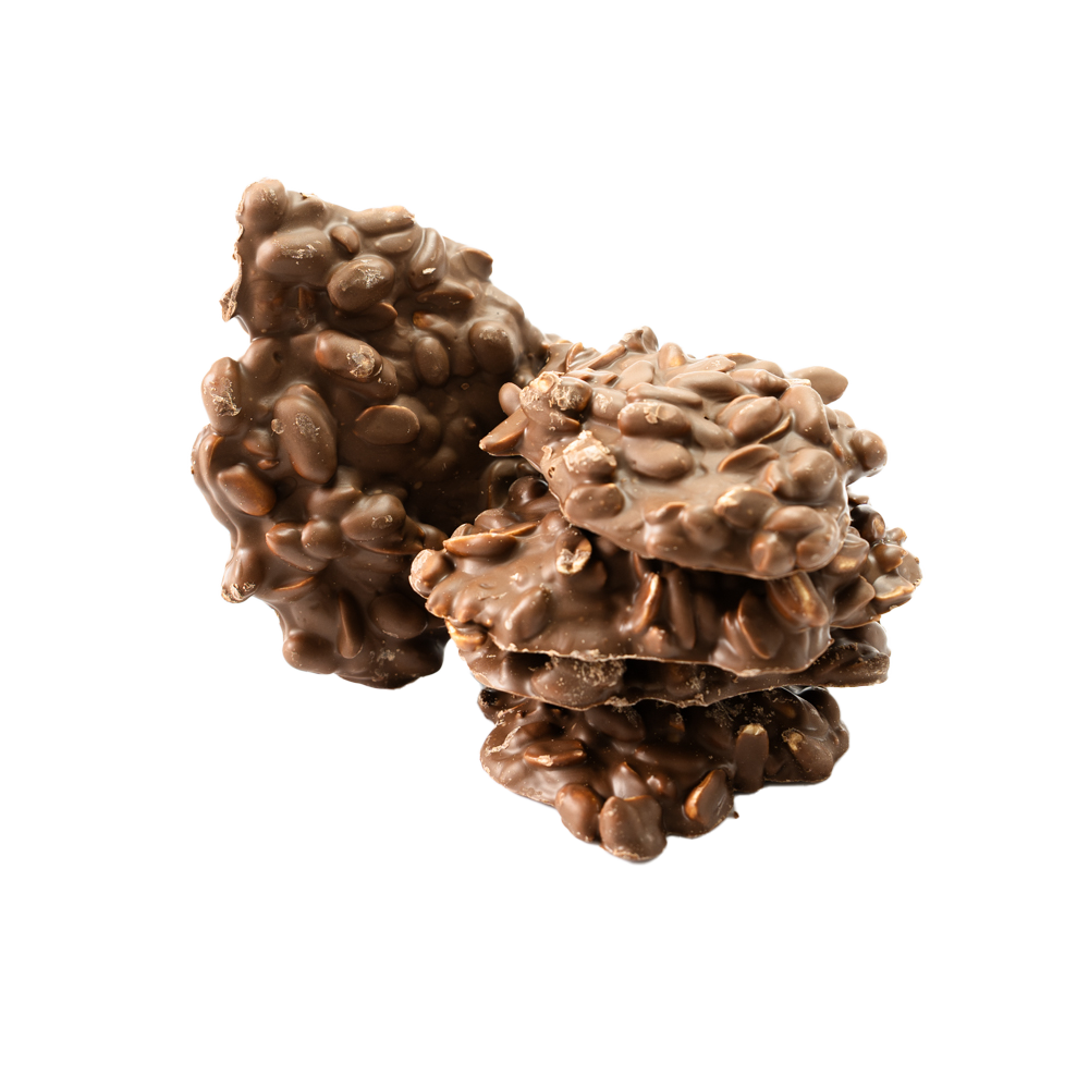 Rengeteg földi mogyoró tej csokival leöntve. Mivel a csoki nem szereti a meleget, termékünket szeptembertől májusig kínáljuk.